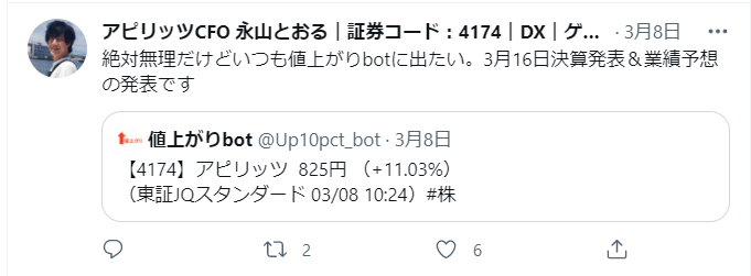 おなまし@onaramachine約17時間アピリッツの社長、本決算前にやたら投資家へアピールしてたが結果オーラ …