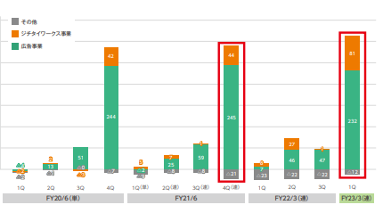 前期が9ヶ月決算なので前年の4-6月(21.06期4Q)と比較するとほぼ横這い。例年4-6月しか纏まった利益は出ない。これでPTSで一時S高。ガラの悪い資金で株価形成されているということです