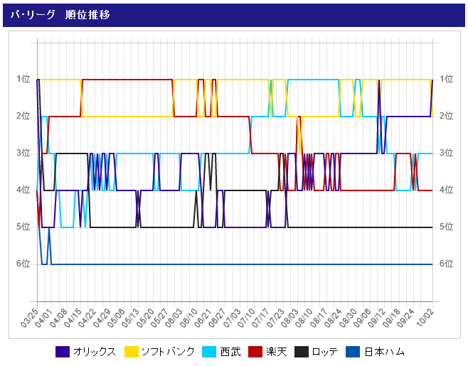 シーズン中一度だけ首位→最終ゲームで同率首位で優勝→日本一