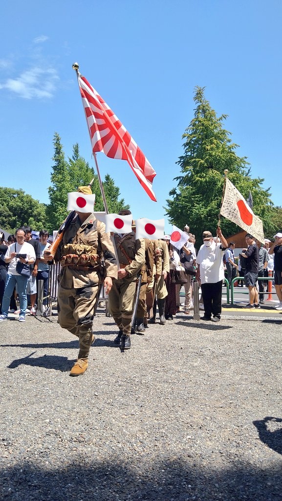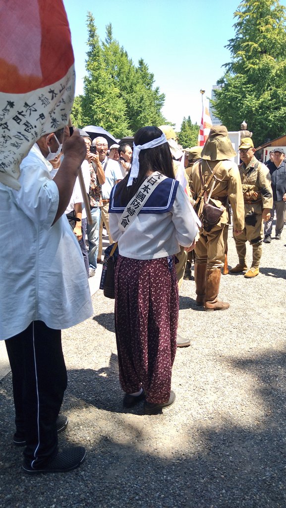 【昭和100年】m9(;゜Д゜)つ<今ここ靖国神社。11:45ごろコスプレの人たちの行進。